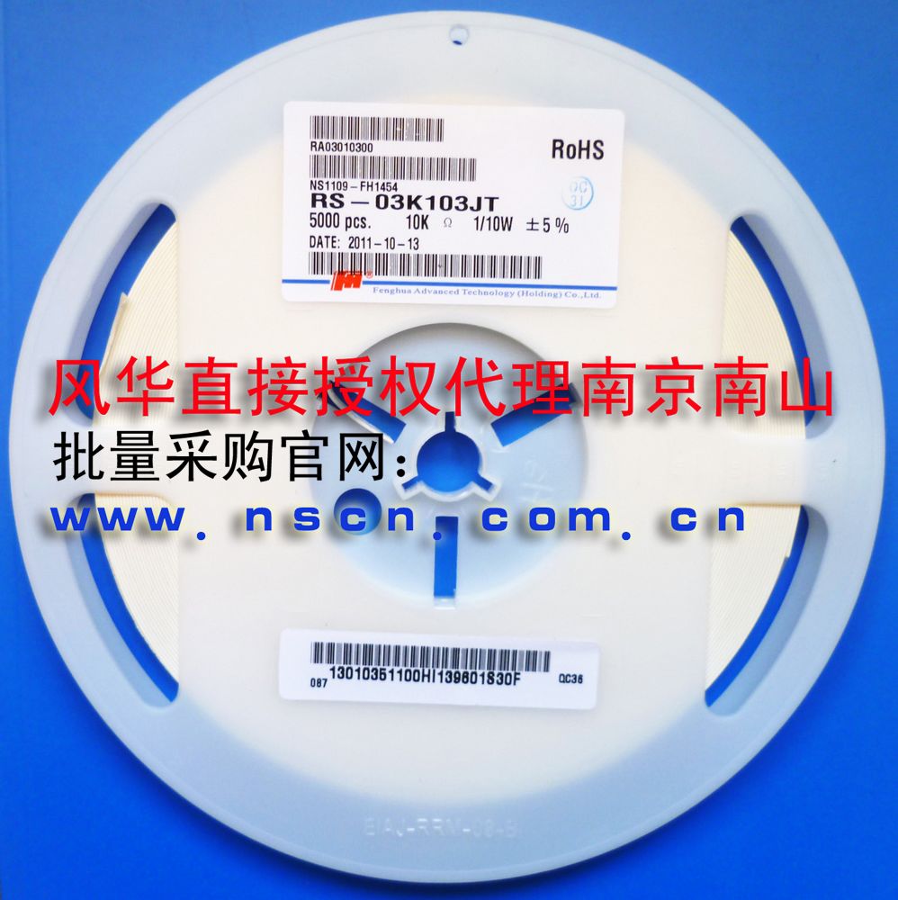 風華高科(FH)代理商南京南山半導體有限公司代理供應風華高科(FH)常規貼片電阻全系列產品。風華貼片電阻規格型號RS-03K103JT是阻值10KRR0603封裝J(5%)精度的常規型號。南京南山半導體在南京總部和深圳備有大量現貨庫存,歡迎撥打風華代理南京南山全國咨詢服務電話或咨詢在線客服。