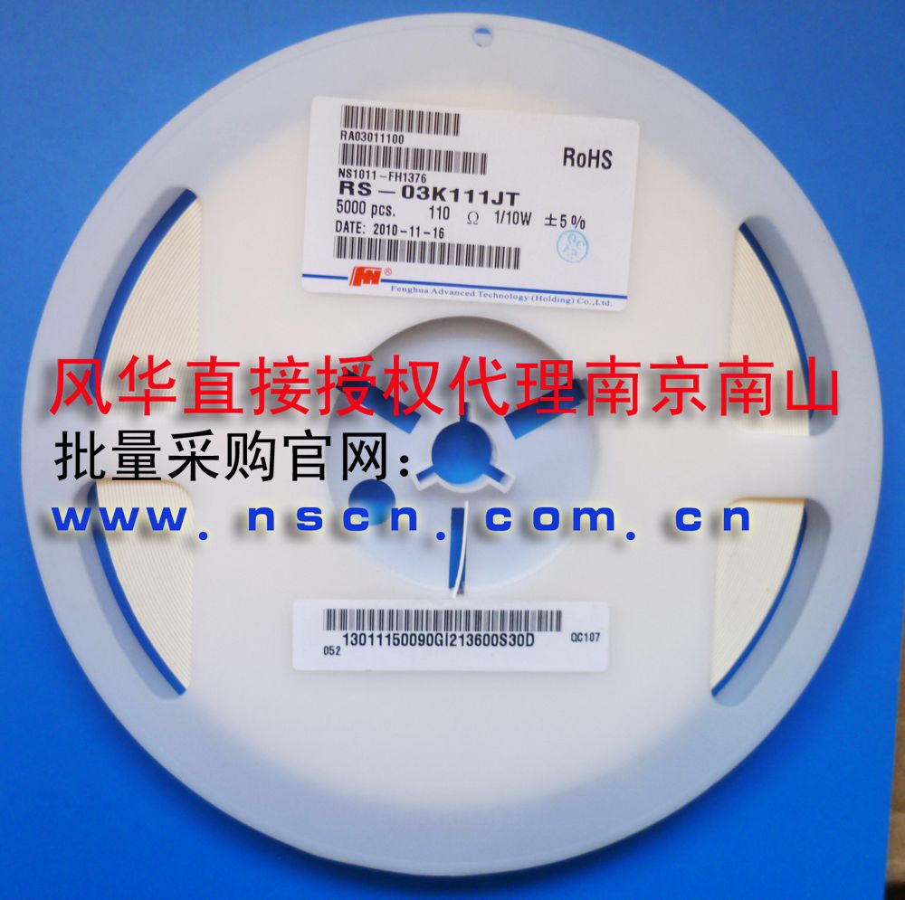 風華高科(FH)代理商南京南山半導體有限公司代理供應風華高科(FH)常規貼片電阻全系列產品。風華貼片電阻規格型號RS-03K111JT是阻值110RR0402封裝J(5%)精度的常規型號。南京南山半導體在南京總部和深圳備有大量現貨庫存,歡迎撥打風華代理南京南山全國咨詢服務電話或咨詢在線客服。