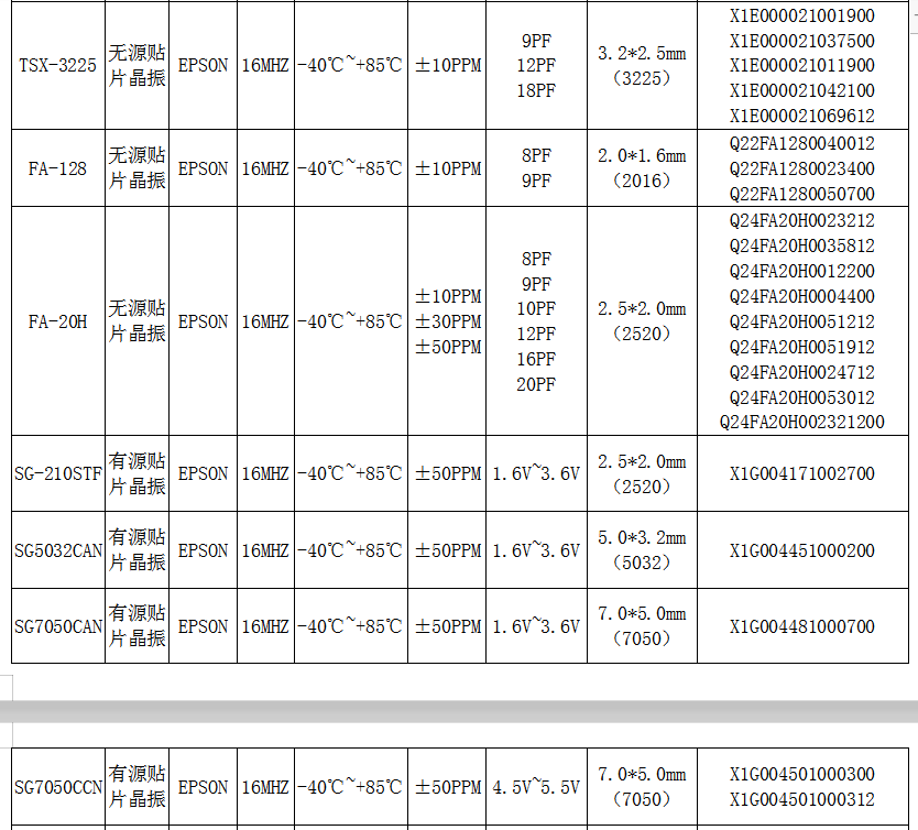 小編覺得,如果只是單片機的學習測試,用國內16mhz晶振替代再去改指定沒有問題,但是如果真的是企業產品采購,建議還是使用進口16m貼片晶振和8m貼片晶振,畢竟晶振別看體積小,卻幾乎是每個產品重要元件之一,整個產品精度性能需要靠它來體現,可謂差之毫厘謬以千里,愛普生晶振一直提供市場且具有品質的產品,南京南山半導體作為愛普生官方授權中國區核心代理商,在這里給大家介紹下16mhz晶振常見的型號規格以及封裝供大家選型: