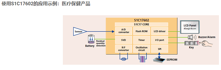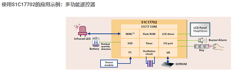 16位微處理器之S1C17000 / 500系列,這是一款低功耗16位微處理器,集成了ROM,RAM,遠程控制器電路,各種I / F和定時器功能。它適用于便攜式設備內置的傳感器系統。