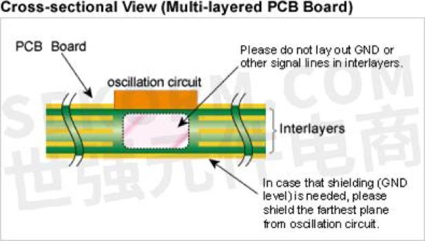 如果是多層板,在其它層面也不要有信號線穿過晶體的下方。