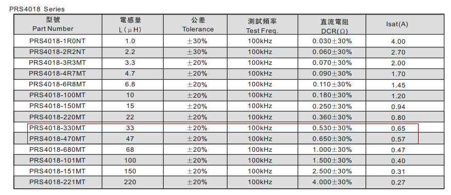 330電感是比較熱門的電感之一,其實我們通常把33uh功率電感叫做電感330。去年年底,我們南山電子也開始盤點庫存,分析元器件今年出貨情況,發現330電感銷量較大的是PRS4018-330MT,說到這款330電感,讓我想到前段時間,我們上海的一個客戶,一直都用PRS4018-330MT,也是因為我們330電感前陣子出貨較多,他們又上個月在已經給他們備了貨情況下,新增30K的貨,因為他們是終端,有好幾個技術人員,所以我們就讓他們自己根據規格書換適合的功率電感,他們選擇了相同規格的PRS4018-470MT,我們就發貨了,可是發貨后,他們采購跟我們這里溝通將PRS4018-470MT退了回來,原來他們一個新來的技術搞錯了,PRS4018-470MT電流不夠,只能等我們調回原來的33uh功率電感。接下來南山半導體就來給你分析下原因,同時告訴大家如何選型: