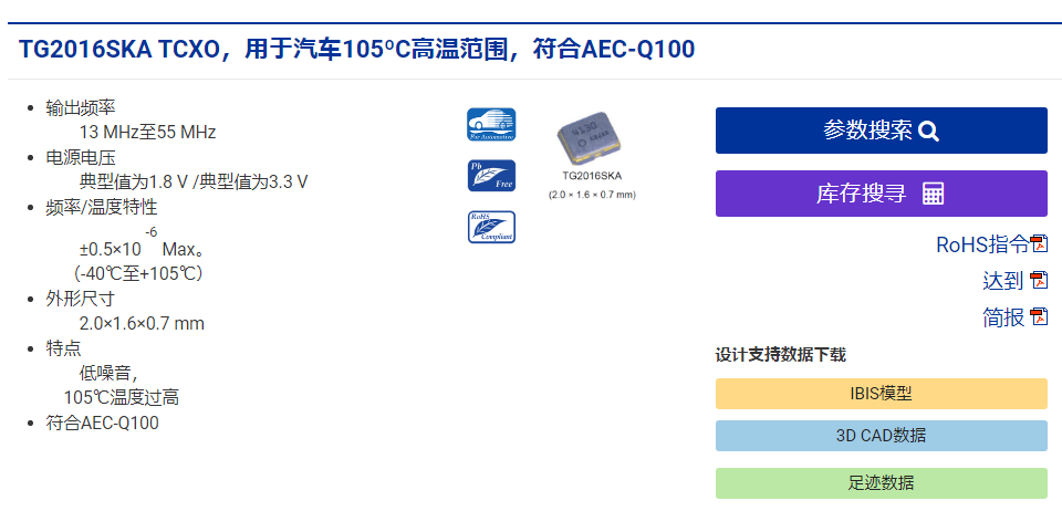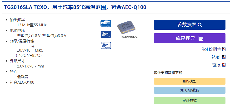愛普生推出兩款汽車用新型TCXO:TG2016SKA,TG2016SLA適用于車載GNSS和V2X