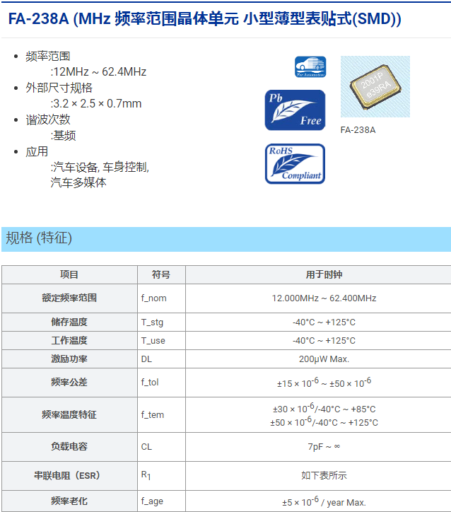 汽車用晶振FA-238A:適用于車載設(shè)備無(wú)鑰匙進(jìn)入系統(tǒng)的耐高溫晶振