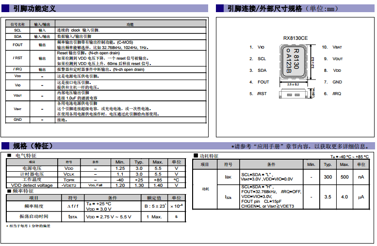 用于便攜可穿戴設備的時鐘芯片模塊:RX8130CE