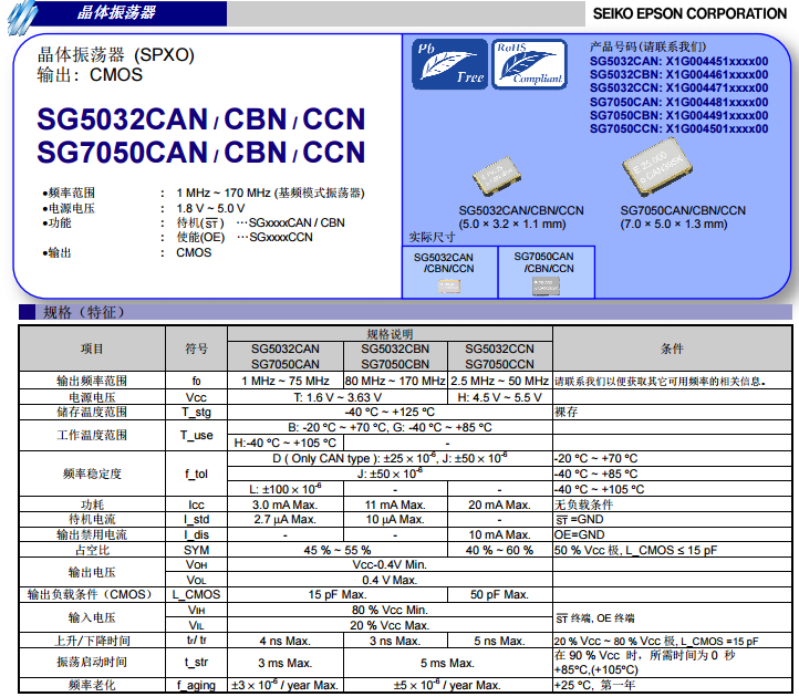 SG5032CCN系列,SG5032CCN規格,SG5032CCN