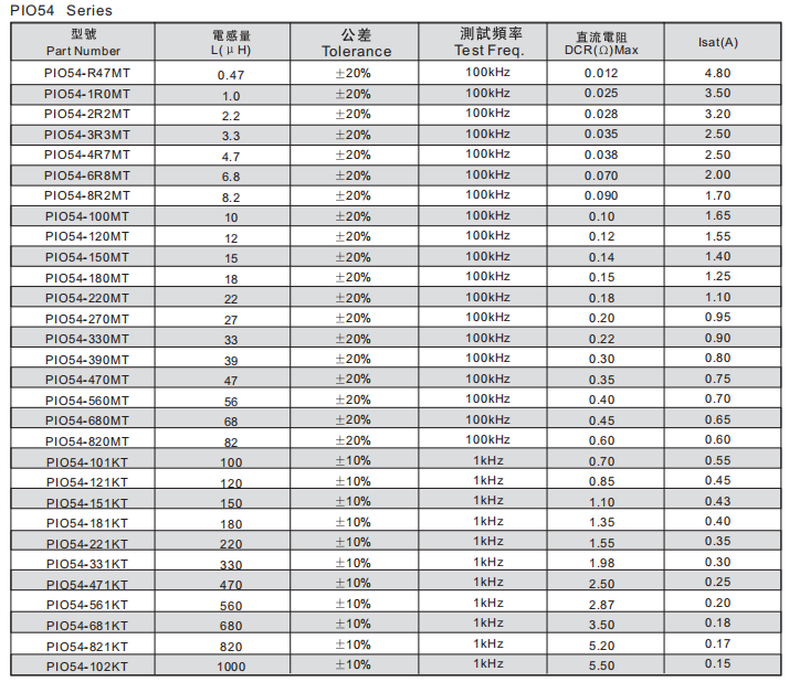 CD54電感一直是市場上最受追捧明星產品,特別是CD54功率電感更是廣泛應用在移動產品,數碼產品,汽車電子,通訊設備等中,就在前天我們南山電子接到一位客戶詢問:他們需要一款22uh功率電感,精度±20%,尺寸5.8x5.2x4mm左右,工作電流不能超過1.2A的功率電感,我們客服根據以上條件,幾分鐘便幫他選擇了風華高科的CD54功率電感系列——PIO54-220MT。小編可以在這里幫助大家分析下,為何做這樣的選型規劃最終選型CD54功率電感:首先看尺寸,這個尺寸毫無疑問,就是常見的CD54功率電感,其次看精度 ,如果是精度20%,那么肯定是M類型精度,其實他們當時說的是20uh到30uh感量都可以,那么毫無疑問22uh功率電感是最熱門的且工藝較成熟的,再看電流不超過1.2A,那么CD54功率電感——PIO54-220MT可以符合以上選型條件。其實CD54電感還有很多其他感量也很常用,南山電子繼續為大家整理出CD54功率電感相關所有型號的規格參數,供大家選型時參考使用。