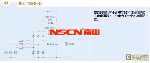 當(dāng) 發(fā)生故障時,PTC熱敏電阻用作限流元件的優(yōu)勢就會十分明顯。如果繼電器接通失敗,負(fù)荷電流將流經(jīng)充電電阻器,并產(chǎn)生強(qiáng)大的熱應(yīng)力,這要求電阻器有相應(yīng)的 尺寸。若采用基于PTC陶瓷的充電電阻器,其電阻會由于強(qiáng)大的起始功率損耗而升至數(shù)10 k,從而能夠在故障發(fā)生期間限定電流(參見圖6)。在約三秒之后,先流經(jīng)兩電阻器然后流經(jīng)總體電路的電流已跌至數(shù)10 mA。有關(guān)吸取能量的比較,請參見圖7。