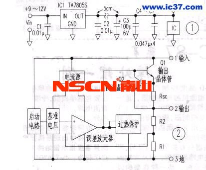 在應用三端穩壓器時,一般都在其輸人端和輸出端各接一支0.1w0的小電容器,以保證其穩定工作。圖1是一個5V穩壓電源,在組裝電路時,恰遇庫房0.1 wF電容斷貨幾于是用0.01 wF電容代替,考慮到后續電路還并有多個旁路電容,以為并無大礙。在電路板上,C1、C2緊靠三端穩壓器安裝,電解電容C3距三端穩壓器5cm,而旁路電容C4-C7則靠近各自的IC. 電路通電后,發現三端穩壓器輸出電壓不穩定,最后確定是三端穩壓器產生了振蕩。 圖2是三端穩壓器的內部結構框圖,內部高增益放大器為負反饋放大器,若輸出側的電容器容量不合適,就容易產生振蕩。結果,將C2換成0.1 N.F,電路工作立刻正常了。由此得出一個教訓:大凡電源用IC,其內部多含有運放,其工作狀態與高增益的模擬放大器相同,一定要按風華貼片電容手冊指定的容量安裝電容器,以免產生振蕩。 常用的穩壓器TL431,對負荷容量也有要求,按風華高科提供的數抿洗擇容量是不容敘視的工作。