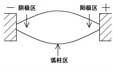 弧柱區呈電中性,它是由分子、原子、受激的原子、正離子、負離子及電子所組成,其中帶正電荷的離子與帶負電荷的離子幾乎相等,所以又稱為等離子體。帶電的粒子在等離子體定向移動,基本上不消耗能量,所以才能夠在低電壓條件下,傳輸大電流。傳輸電流的主要帶電粒子是電子,大約占帶電粒子總數的99.9%,其余為正離子。  因為陰極區和陽極區的長度極短,所以可以認為弧柱區長度為電弧長度。弧柱區的電場強度較低,通常只有5~10V/cm。