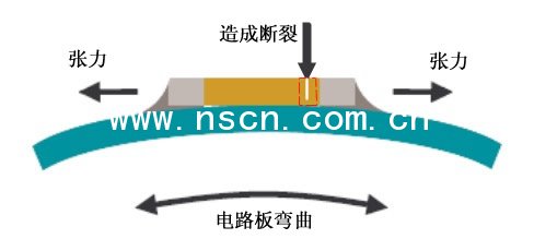 應考慮彎曲的張力對于陶瓷電容的影響。