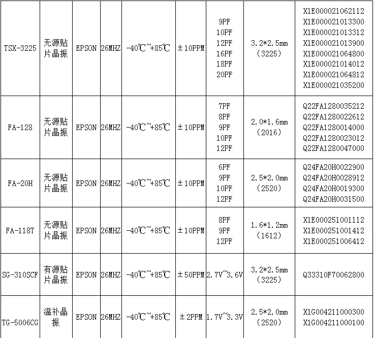 晶振26MHz在電路中是一種很常見的頻率晶體,其中26MHz有源晶振在GPS等領域使用較多,那么大家知道為什么手機通訊通常用26MHz晶振嗎?因為在電路中作為一個時鐘信號26MHzVCO電路產生的26MHz信號再進行2分頻,來產生13MHz信號供其它電路使用,現在多采用26Mhz晶振一是方便倍頻到GSM LO頻率,二是晶體頻率越高相噪越好。基于以上兩點,所以26MHz晶振正好可用于GPS,手機MTK方案、無線藍牙、RF(2.4G)汽車倒車雷達、導航等領域。南山電子作為愛普生晶振官方授權中國地區核心代理繼續為大家整理出愛普生晶振26mhz常用型號,供大家選型參考。