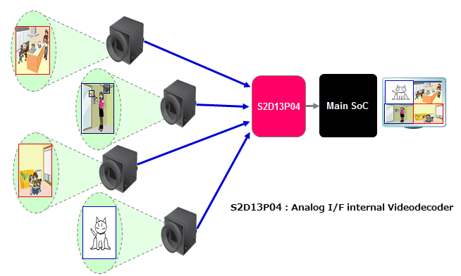 愛普生相機接口IC適用于多相機系統。它們具有4通道的攝像機輸入和4種模式的輸出;固定的香奈兒,合并,自動掃描和壓縮。由于內置了用于圖像處理的VRAM,因此4into1的攝像頭接口可以通過單芯片實現,無需更改1攝像頭系統即可輕松增加攝像頭的數量。