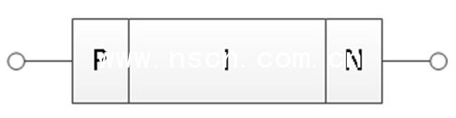 在制造PIN半導體的時候,I層本征半導體層達不到絕對的純凈。當中或多或少都摻雜了一些P型雜質(空穴較多),或N型雜質(電子較多)。下面以I層中摻雜了P型雜質為例進行說明。PIN半導體的結構如下圖所示。